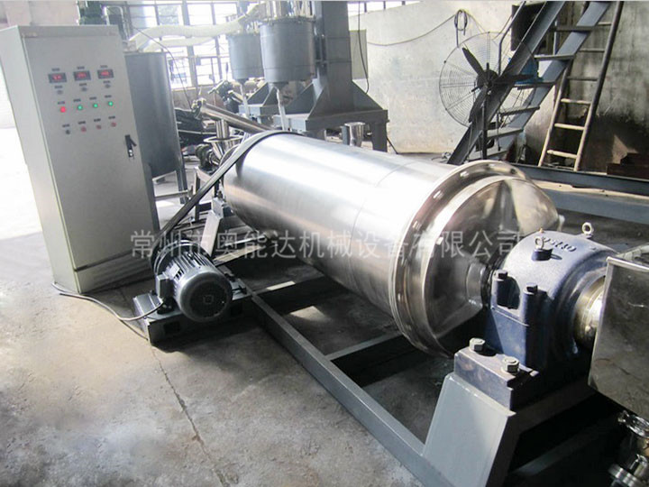 本機為臥式筒形旋轉裝置,外沿齒輪、鏈輪或皮帶傳動,兩倉格子型球麻機。